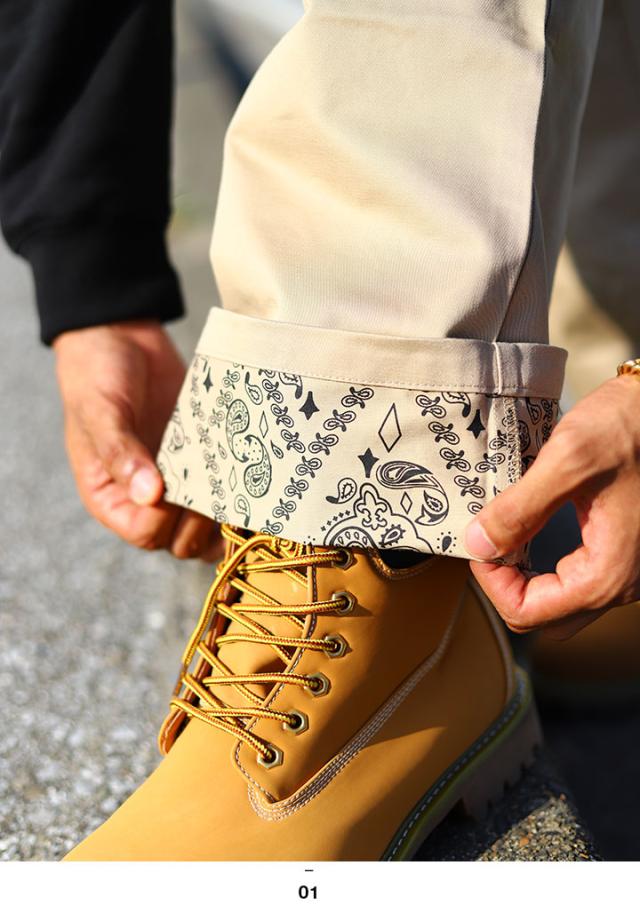 ACEFLAG パンツ ズボン チノパン ペイズリー柄 ロールアップ バギーパンツ チノ ゆったり 太め メンズ 綿 コットン 無地 カーキ 春夏秋冬用 大きいサイズ AF-LP-CH-001