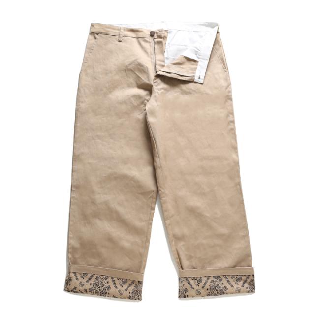 スソの裏側にペイズリー柄を採用し、折り返さずプレーンに穿くことはもちろん、「ロールアップ」して履けばウエッサイな表情も楽しめる2WAY仕様。
