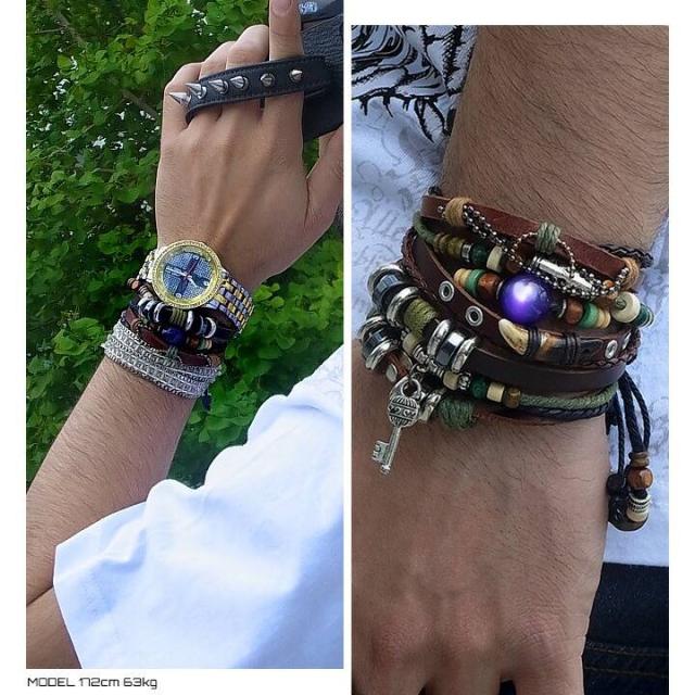 なんと!70種類からお好きな物を選べる!!選べる楽しさハンパない♪人気モチーフやストーンが付いた本革ブレスレットです!木製ビーズを引いて着脱するタイプ。お好きな長さに調節できますので男女兼用でご愛用いただけます。(最小約16cm-最大約26.5cm)