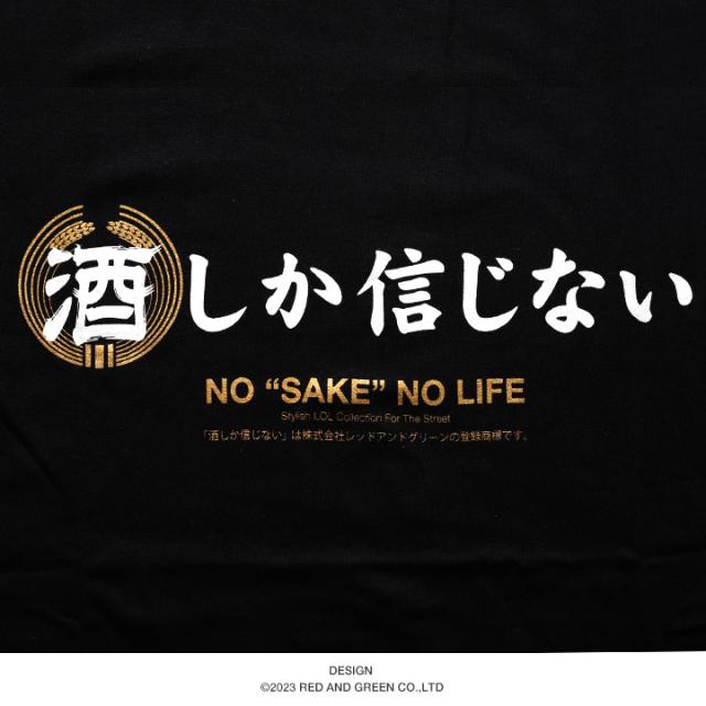 シンプルでインパクトのある『酒しか信じない®』を、和風のグラフィックで表現。「酒」の文字に施された金色の稲穂(酒米) や英訳の「NO SAKE NO LIFE」もポイント。