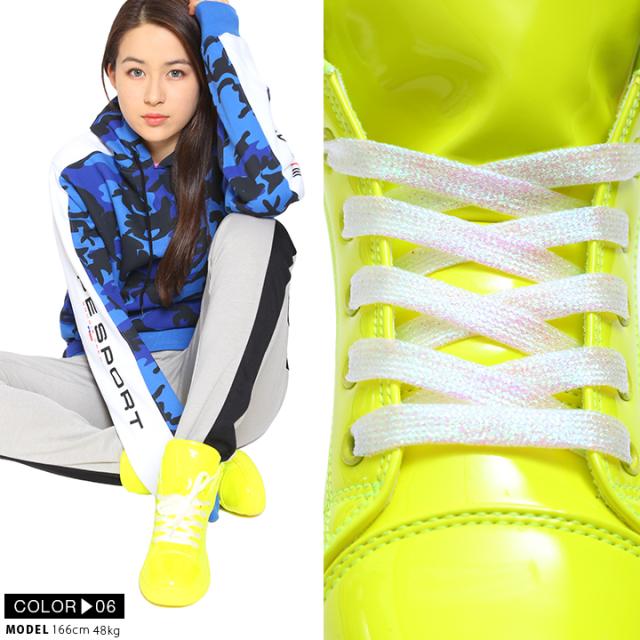 本商品はキックス愛好家の為のシューレース・コレクション。全面をキラキラ光るラメ グリッター入りのシャイニー素材で仕上げたラグジュアリーなデザイン。存在感あるやや太めのピッチ幅。靴をカラフルに飾るランキング常連の人気アイテム。足元からコーディネート全体を格上げします。