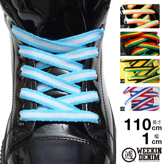 靴紐 おしゃれ ウィーキンデニム WEEKIN DENIM シューレース 平紐 靴の印象をガラリと変える魔法の靴ひも くつひも b系 かっこいい ライン グラデ ボーダー トリコロール ジャマイカ ラスタ カラフル 110cm WD-FW-KH-017
