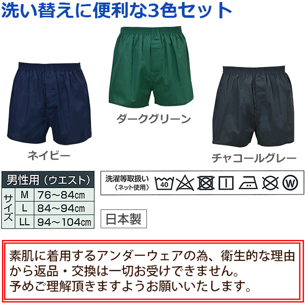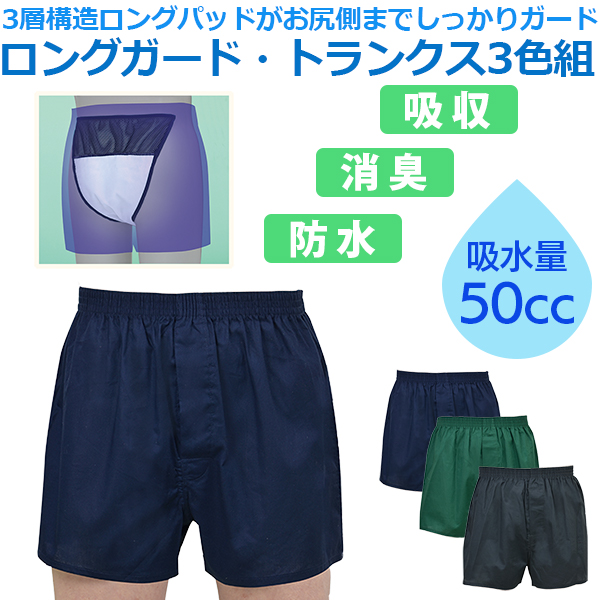 失禁パンツ 男性用 50cc 日本製 お尻側までしっかりガード ロングガード・トランクス 3色組‐メンズ 快適パンツ 尿漏れパンツ 安心パンツ 前開き 消臭 防水