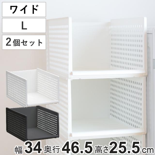 収納トレー ワイド L プラスチック 洗面台下 収納 日本製 同色2個セット ( トレー シンク下 幅34 奥行47 高さ26 収納ケース 卓上 キッチン クローゼット収納 洗面台 整理 積み重ね スタッキング トレイ タイプ 押入れ収納 )