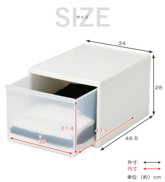 収納ケース ワイド L 幅34×奥行46.5×高さ28cm プラスチック 引き出し 収納 日本製 ( 収納ボックス 衣装 ケース クローゼット収納 ボックス 積み重ね 押入れ収納 キッチン 脱衣所 衣類 スタッキング 小物収納 洋服 リビング収納 )