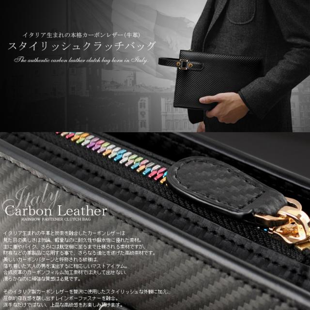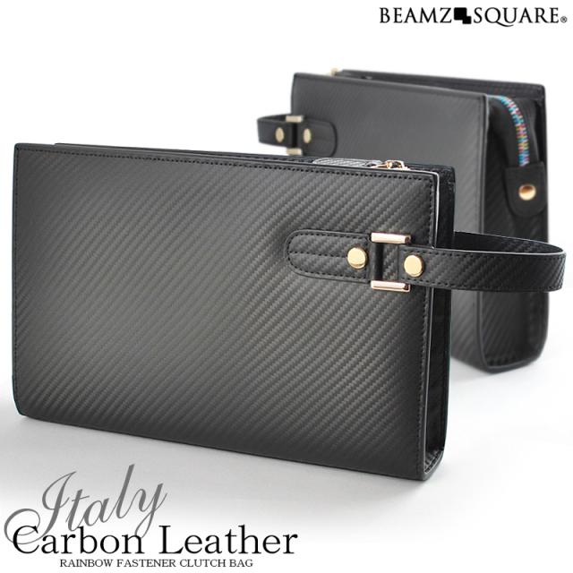 クラッチバッグ メンズ 本革 イタリアン カーボンレザー 小さめ セカンドバッグ ブランド BEAMZSQUARE ブラック レインボーファスナー