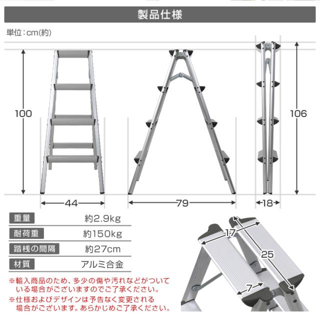 脚立 4段 折りたたみ アルミ 軽量 伸縮 踏み台 折りたたみ脚立 持ち手付き ステップ台 ステップラダー はしご 梯子 ステップ 大掃除 洗車台 金物 アルミ踏み台4段 資材 運搬 コンパクト 送料無料