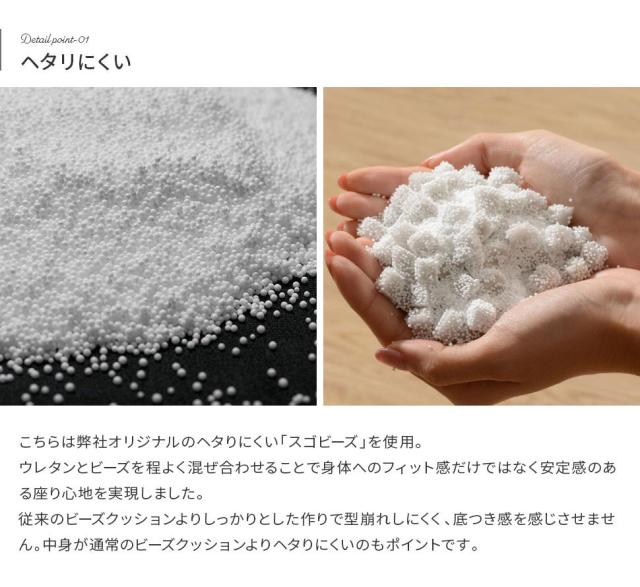 【素材】中材:発泡ポリスチレンビーズ、高弾性ウレタンフォーム