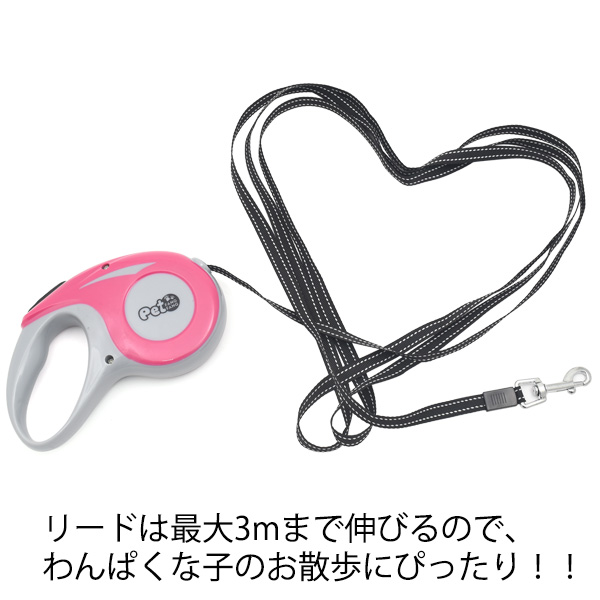 ペット用 伸縮リード 3m パステルカラー お散歩 ワンちゃん用 リード お出かけ ドッグ用品 散歩リード 簡単操作 散歩グッズ 握りやすい 可愛い 女性 使いやすい ペット用品 小型犬 中型犬