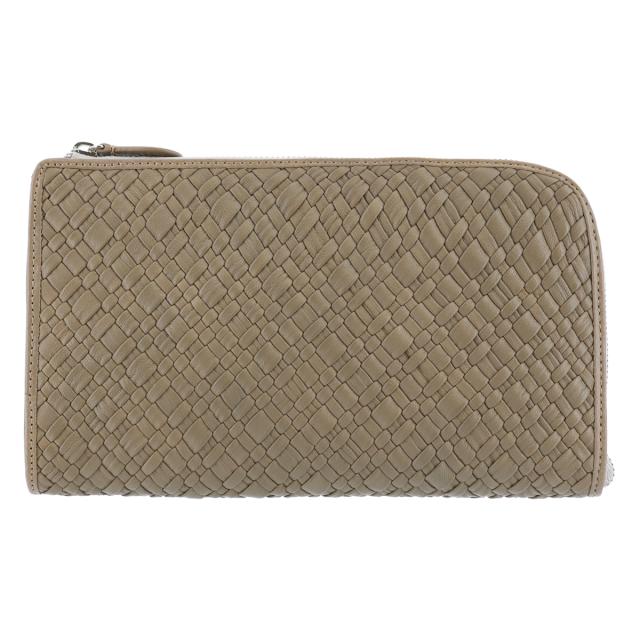 一定サイズに裁断した革を短冊状にしてから織り込みながら繋ぎ合わせ筒状にし、「革漉→貼る→編む」の工程を幾度も経て完成される、上品さと洗練された雰囲気のあるバッグです。