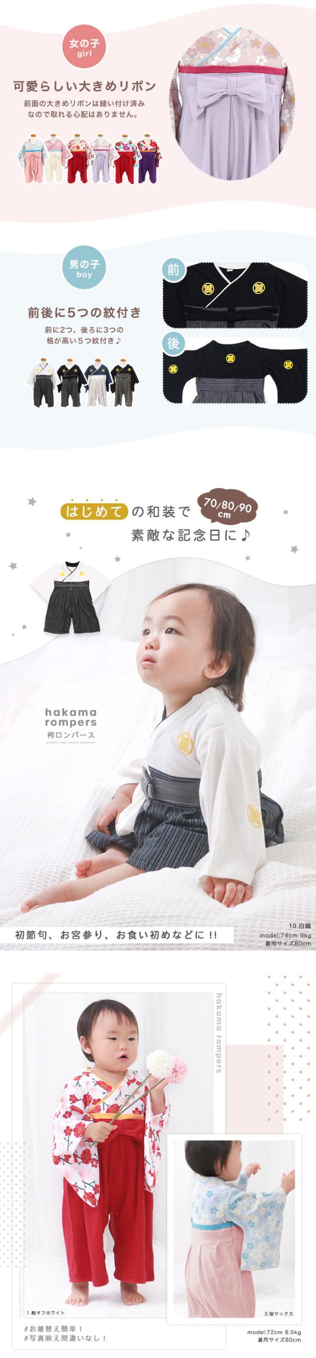 ベビー袴 ( 袴ロンパース ) 袴 ロンパース 女の子 男の子 10colors お正月 初詣 お食い初め ベビー服 ベビー カバーオール 新生児 70/80/90