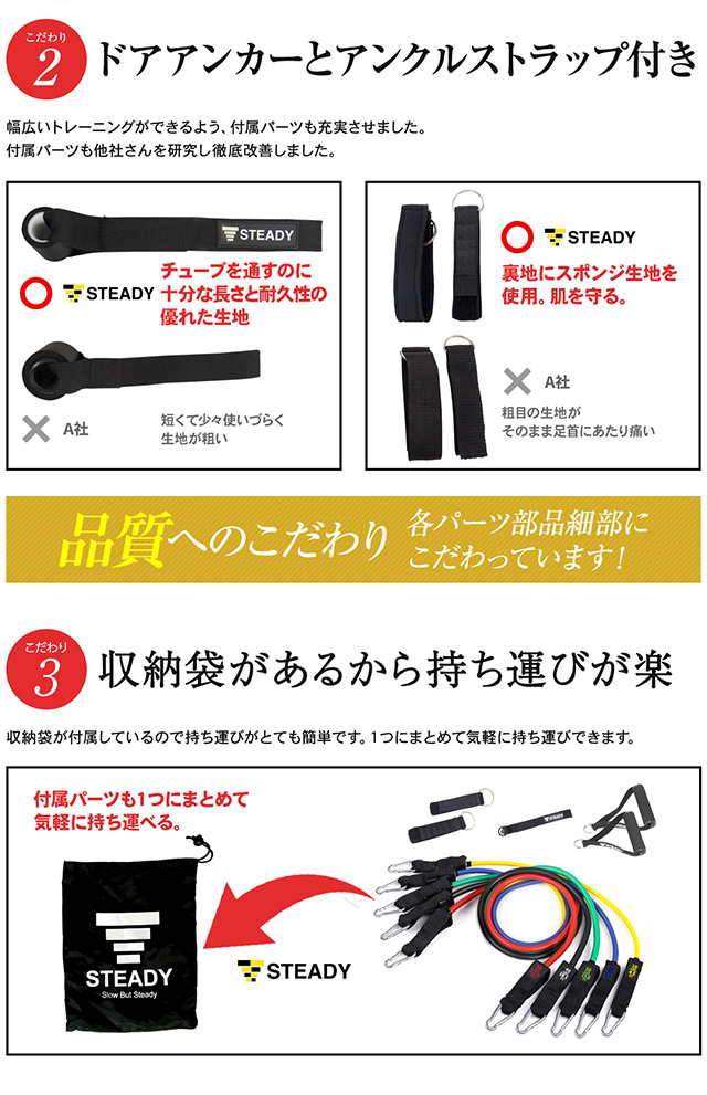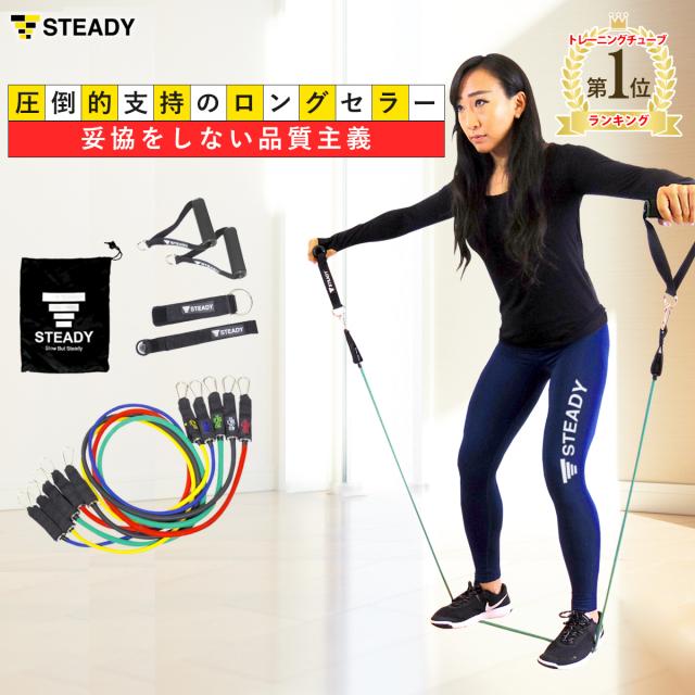 【1位獲得】トレーニングチューブ 強度別5本セット 日本語トレーニング動画・収納ポーチ付 [メーカー1年保証] STEADY(ステディ) ST104 ゴムチューブ フィットネスチューブ ゴムバンド エクササイズバンド ストレッチ リハビリ