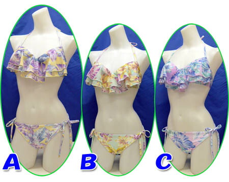 水着 レディース 送料無料 ビキニ 2点セット 7S/9M LIP SERVICE リップサービス バンドゥ ワイヤー2点セット 日本製 女性用 フリル 花柄 黄/緑/ピンク (ys030)