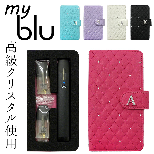 マイブルー ケース myblu 手帳型【キルティング×高級クリスタル×イニシャル】マイ ブルー my blu カバー マイブルーケース タバコ たばこ 煙草 禁煙 喫煙 電子タバコ VAPE ベイプ フレーバー 入れ 収納 女性 レディース デコ 贈り物 ギフト メール便送料無料 受注生産