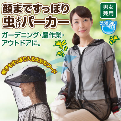 顔まですっぽり虫よけパーカー 虫よけパーカー 虫よけメッシュパーカー 虫よけ 虫除け 虫よけネット 虫除けネット 防虫ネット 首元 顔 ガード アウトドア キャンプ 釣り 屋外 キャンプ