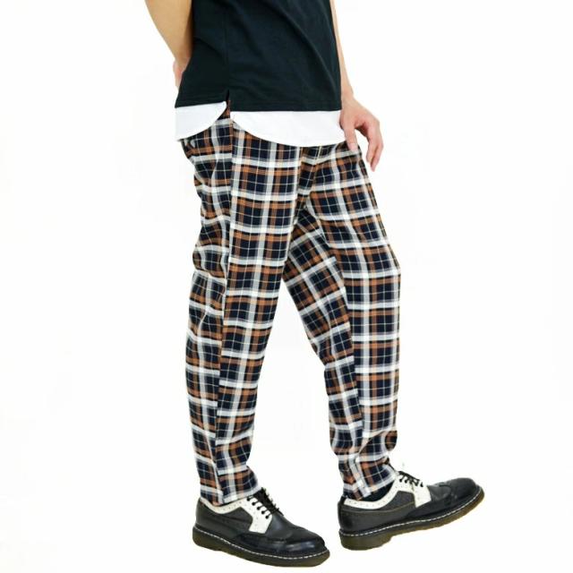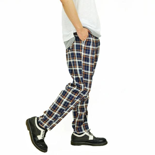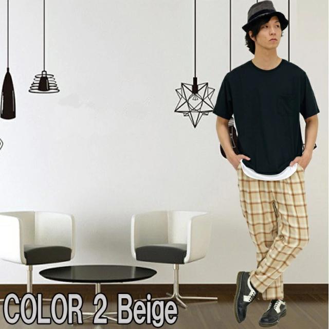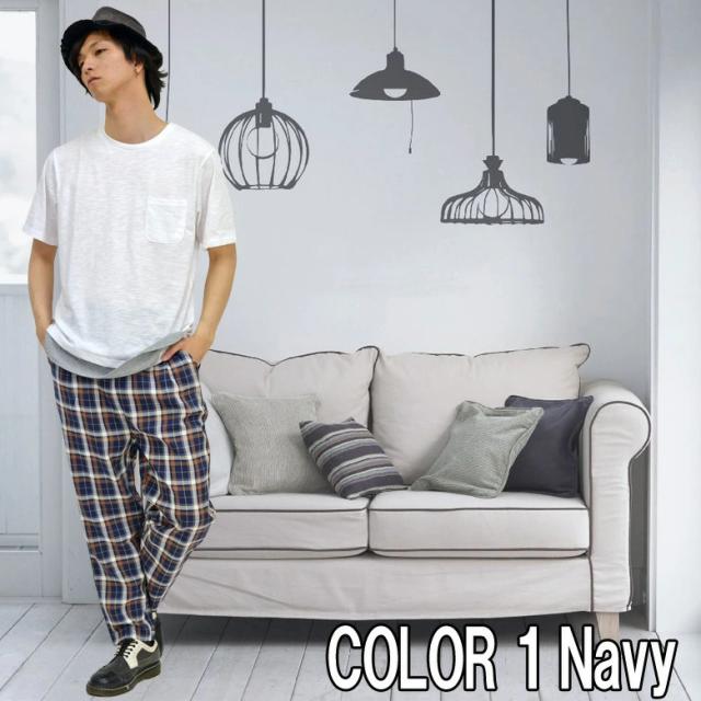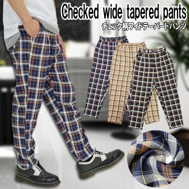 【閉店セール】メンズパンツ チェック柄 ワイド テーパードパンツ ストレッチパンツrv7528 伸縮 お揃い リンクコーデ ペアルック ワイドパンツ テーパードパンツ カジュアル きれいめ キレイメ ネイビー ベージュ ブラック 部屋着 ルームウェア ゆったり M L LL パンツ