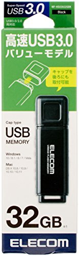 エレコム USBメモリ 32GB USB3.0 Windows/Mac対応 キャップ紛失防止 ブラック MF-HSU3A32GBK