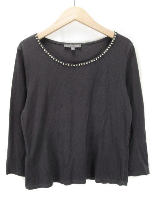 【中古】ローラアシュレイ LAURA ASHLEY カットソー ビジュー パール 七分袖 M グレー レディース