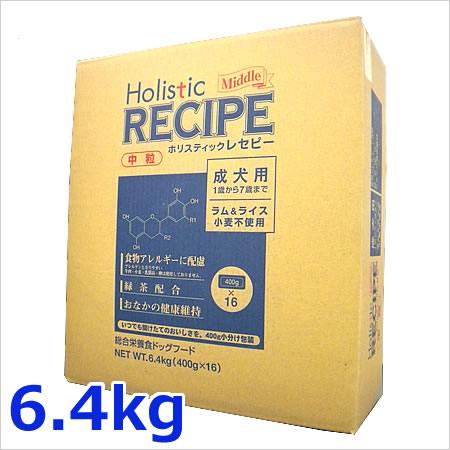 ホリスティックレセピー 成犬用(中粒) ラム&ライス 6.4kg