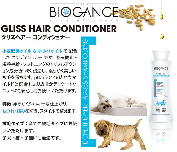 ・絡み防止・栄養補給・ソフトニングのトリプルアクション成分が深く浸透し、柔らかく美しい被毛を保ちます。