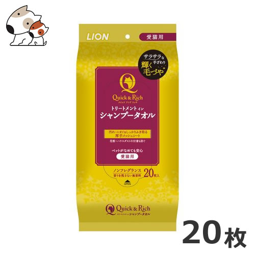 ライオン クイック&リッチ トリートメントインシャンプータオル 愛猫用 20枚