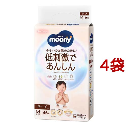 ムーニー 低刺激であんしん M 6kg〜11kg 紙おむつ テープ(46枚入*4袋セット)[おむつ Mサイズ テープ]