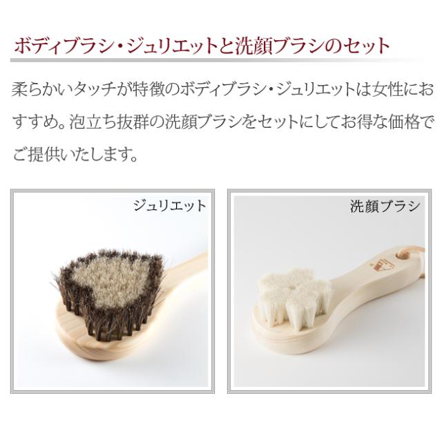 アートブラシ社 馬毛ボディブラシ・ハート ジュリエット+洗顔ブラシセット(浅草アートブラシのボディブラシのセット 女性におすすめのアートブラシのお風呂グッズ 宮内庁ご用達 art brush) 即納