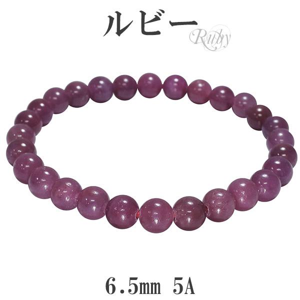 ルビー 5A グレード ブレスレット 6.5mm 17〜17.5cm 誕生石 7月 天然石 パワーストーン 赤紫色 ルビーブレスレット 天然石ブレスレット 数珠ブレスレット