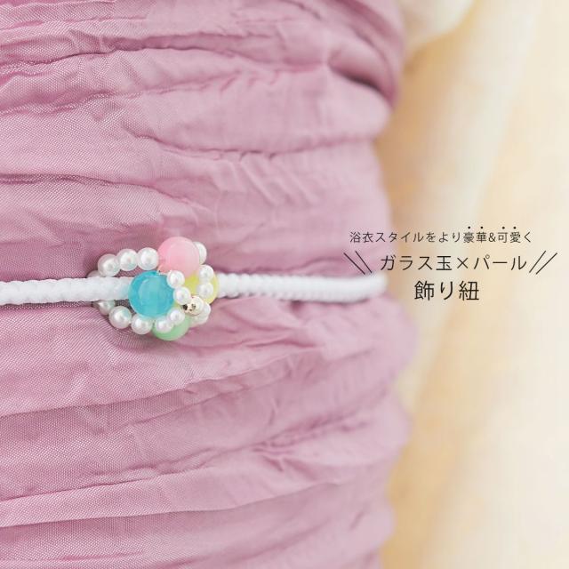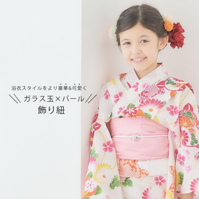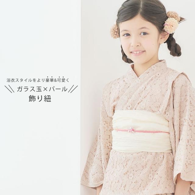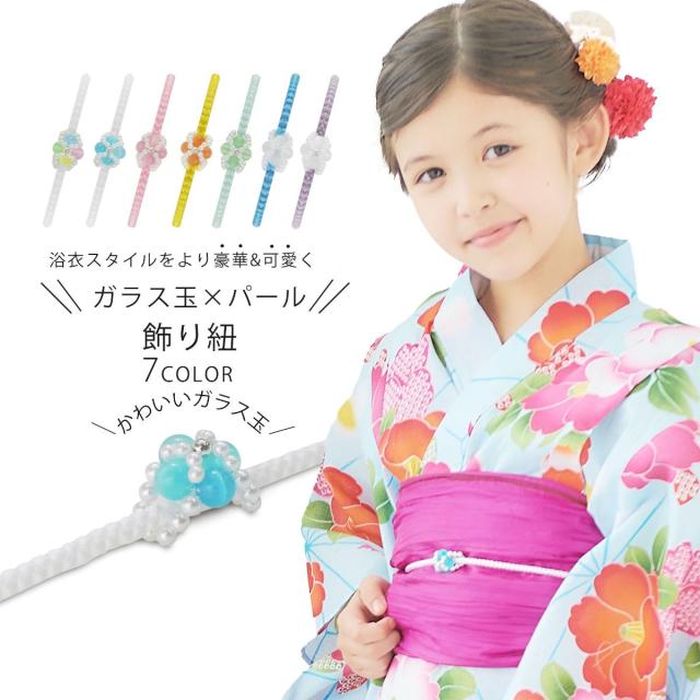 子供用 ガラス玉&パールの 豪華&かわいい 浴衣スタイルをより豪華に 飾り紐 7色 マルチカラー くすみカラー 白 オフホワイト クリーム ベージュ ワイン 赤 ピンク グレイ 黒 緑 グリーン 帯〆 浴衣 夏着物 紐 帯紐 帯ひも 和装小物 帯締め
