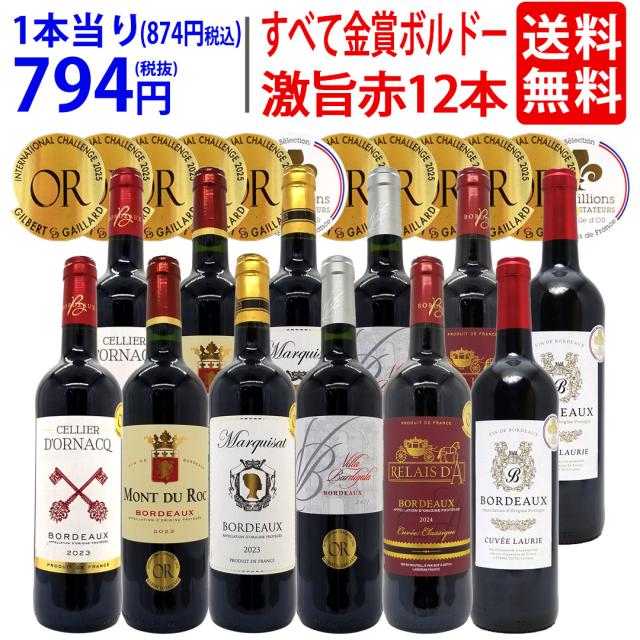 ワイン ワインセット すべて金賞フランス名産地ボルドー激旨赤12本セット (6種類12本) 送料無料 ^W0DI97SE^