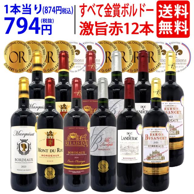 ワイン ワインセット すべて金賞フランス名産地ボルドー激旨赤12本セット (6種類12本) 送料無料 ^W0DI98SE^