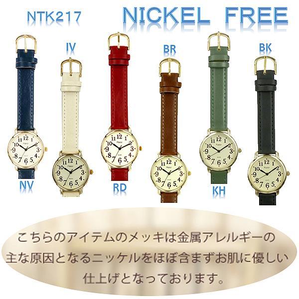 ポスト投函発送 ニッケルフリー NTK-217 見やすい アラビア数字 インデックス 革 ベルト ウオッチ 金属アレルギー の出にくい ニッケルフリー アレルギー対応 肌に優しい レディース 腕時計 おしゃれ かわいい 見やすい 軽量