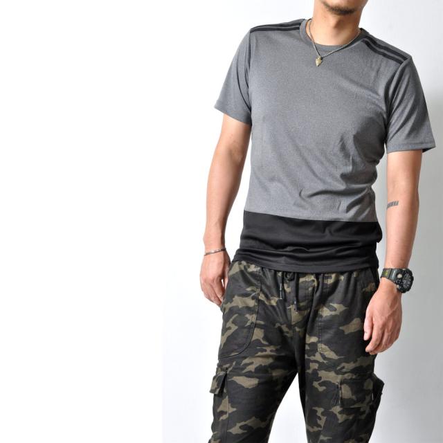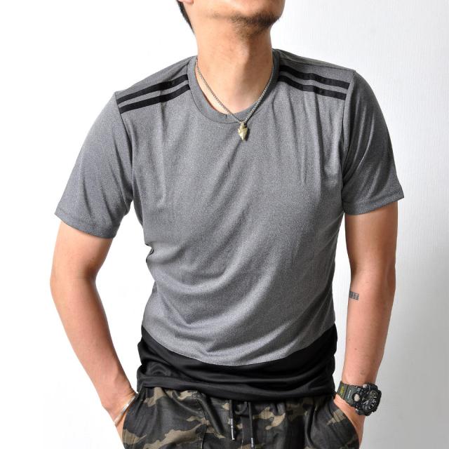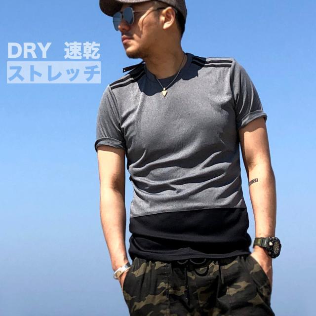 吸汗速乾 DRY 半袖Tシャツ ストレッチ サラサラ メンズ トップス #TA111 カットソー 水着 スポーツ [2色] M便