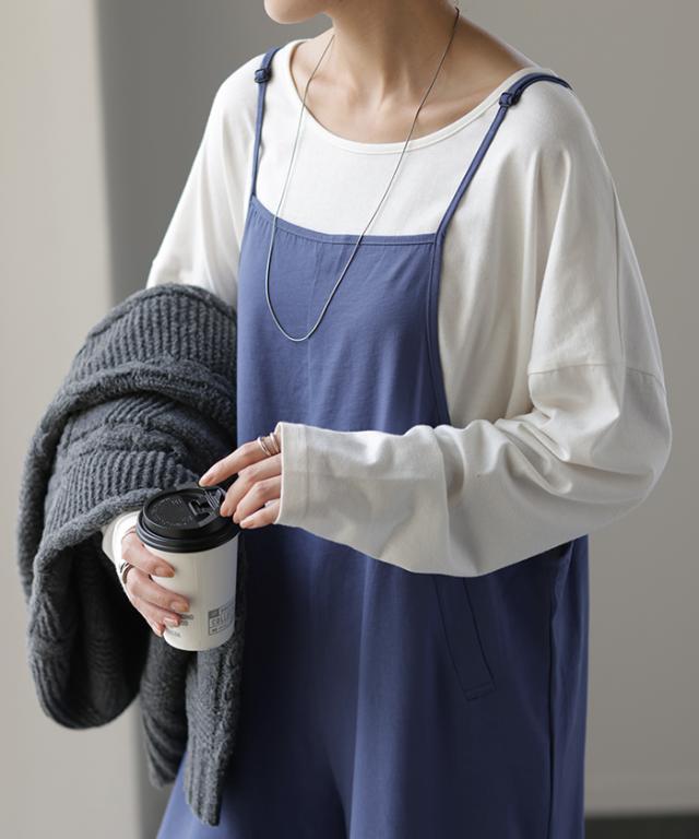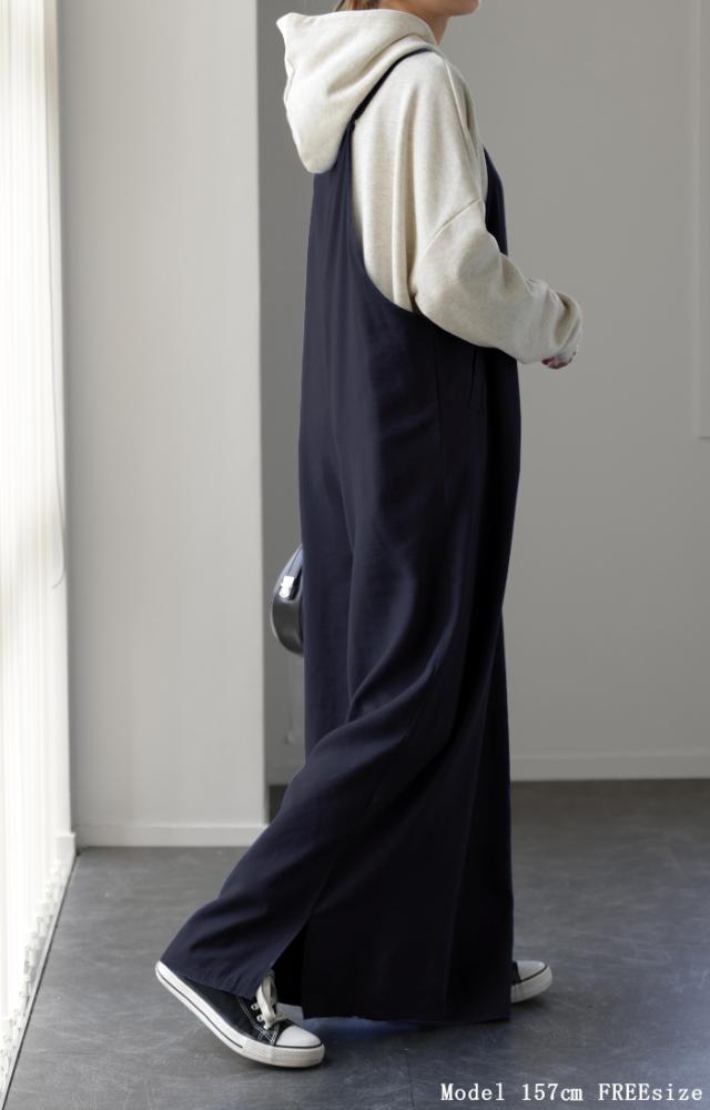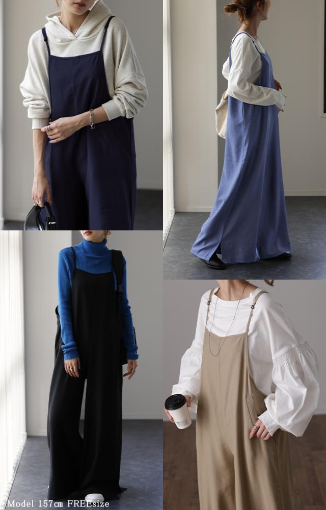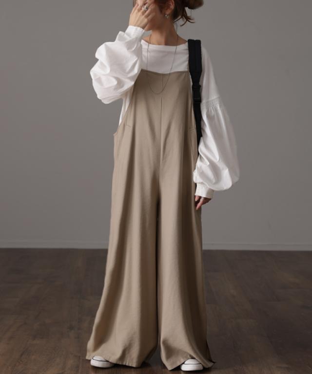 オールインワン レディース サロペット 体型カバー シンプル ナチュラルカラー 大きいサイズ フリーサイズ サロペ コンビネゾン つなぎ ワイドパンツ ワイド パンツ ボトムス 冬 秋 秋新作