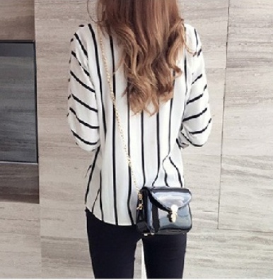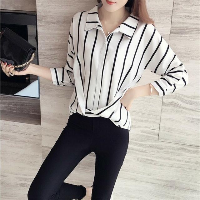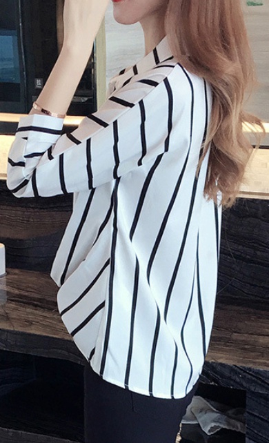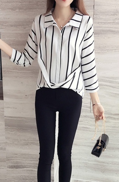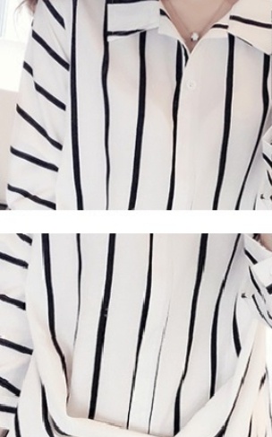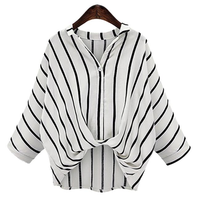 ストライプ×ボーダー 切り替え オシャレ モノトーン シャツ 七分袖 ドルマン風 ロングテール 大きいサイズ
