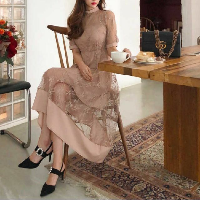 結婚式 お呼ばれドレス 大きいサイズ 30代 40代 50代 ワンピース ドレス 結婚式 パーティードレス 二次会 体型カバー 韓国 ワンピースドレス 可愛い ワンピース 総レース ワンピース 上品ワンピース レースワンピース