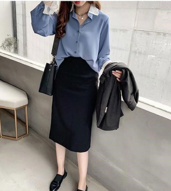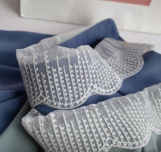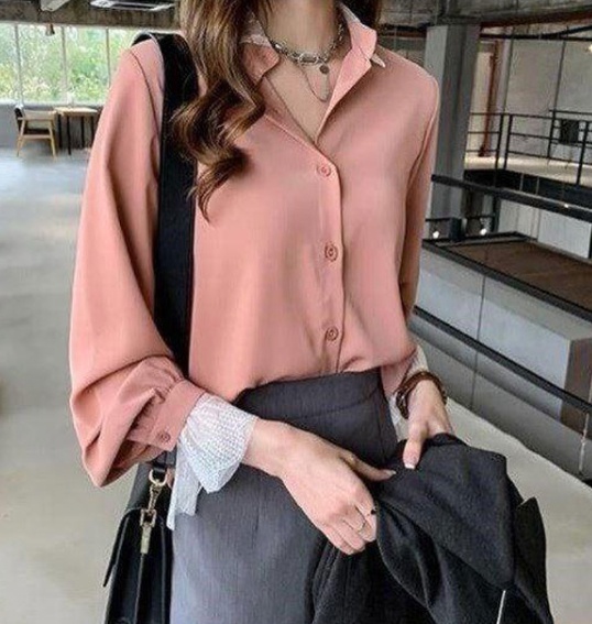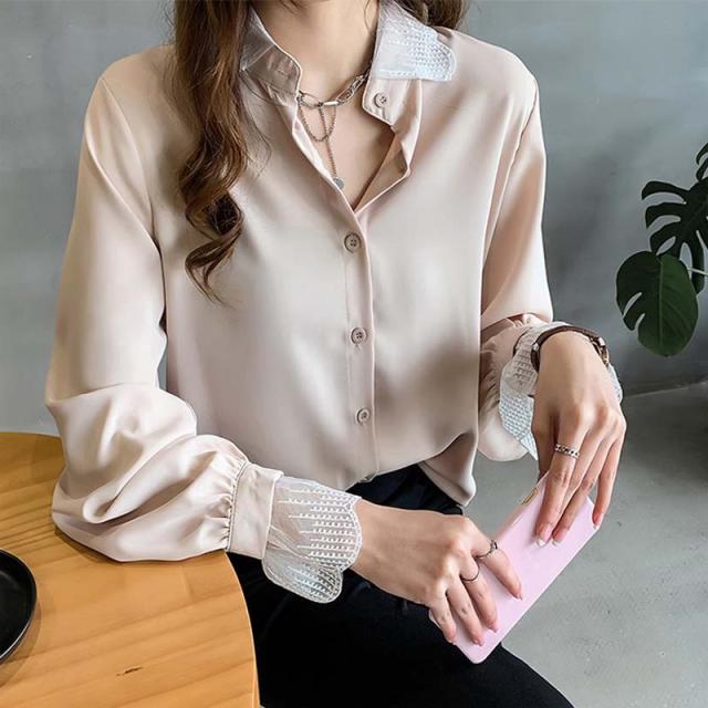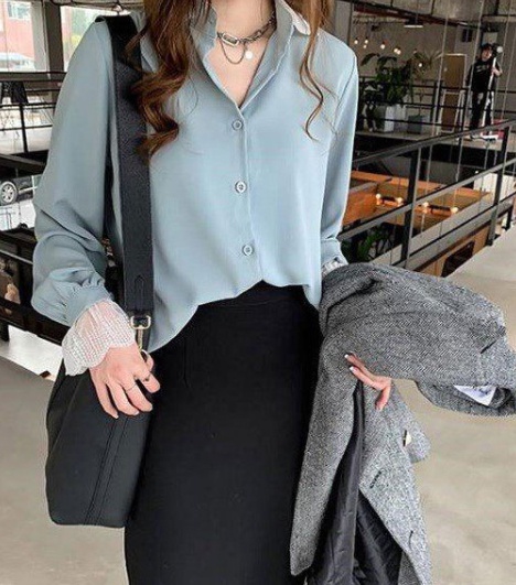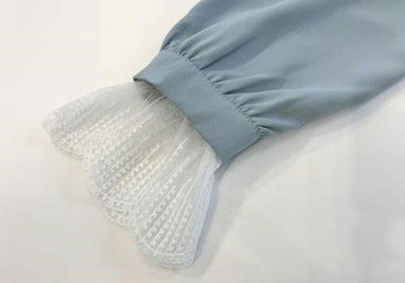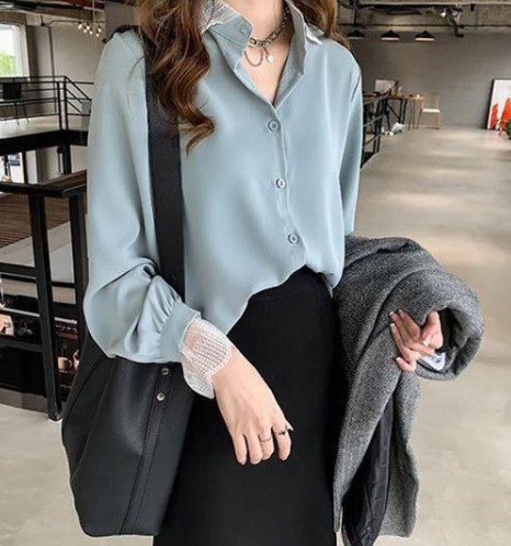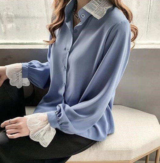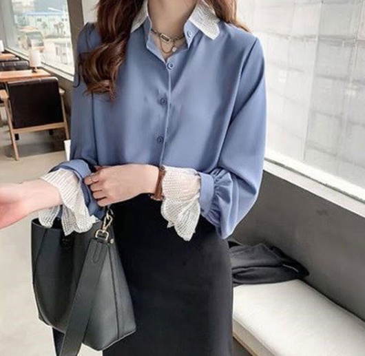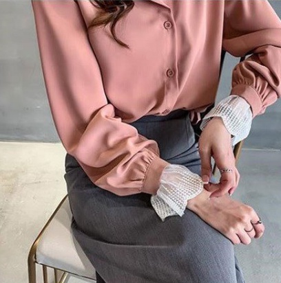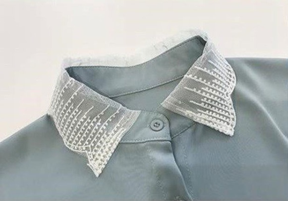 襟と袖口のレースが可愛い大人のシャツです。