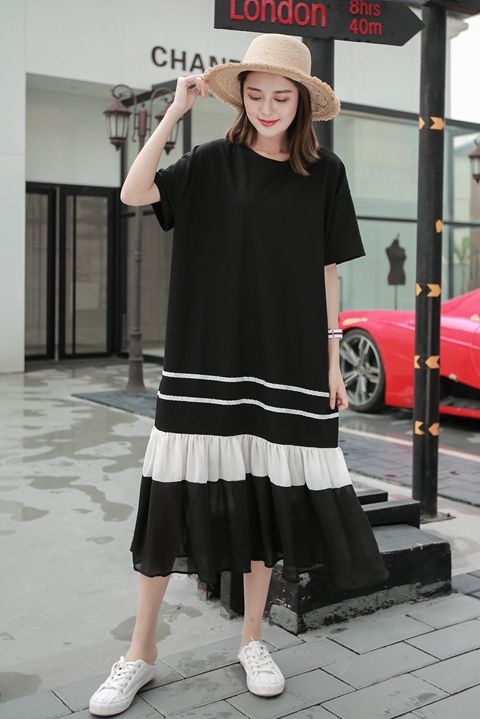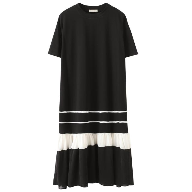 秋のワンピース ロング ドレス レディース ゆったり 半袖 ロングスカート 無地 カジュアル