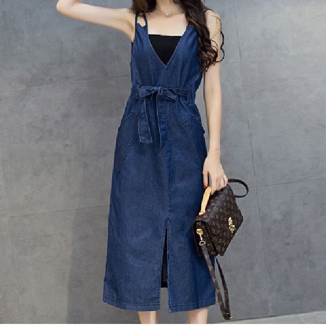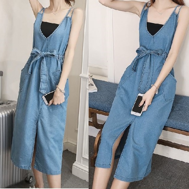 レディース ワンピース aライン ワンピース シャツワンピース ロング丈 tシャツ ワンピース デニム ワンピース ロングシャツワンピース シャツワンピース マキシ丈 タイト 七分丈 ベルト付き カジュアル スタッズ スリット インディゴ ブルー 30普 40普 キレナチュ