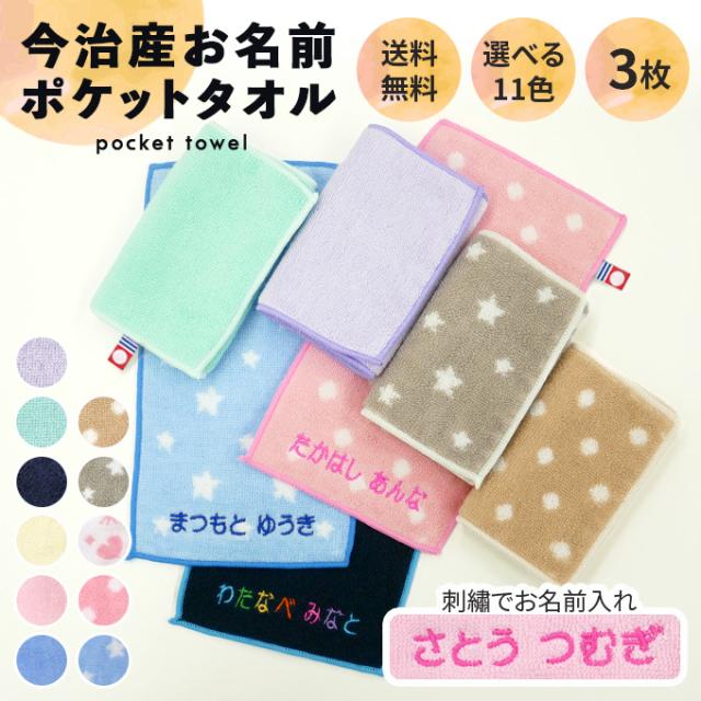 名入れ 刺繍 今治 ポケットタオル 3枚 名前 男の子 女の子 子供 ラッピング ギフト 送料無料 ハンドタオル OR