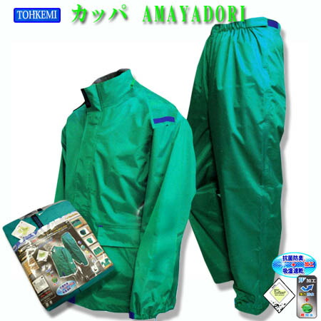 カッパ 合羽 AMAYADORI レインスーツ 上下セット レインウェア トオケミ TOHKEMI かっぱ 通学 通勤にも 抗菌 防臭 吸湿速乾 4L (w02999)