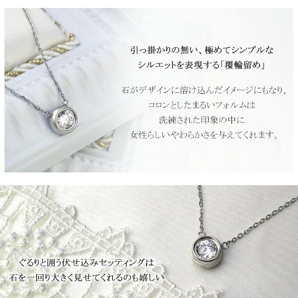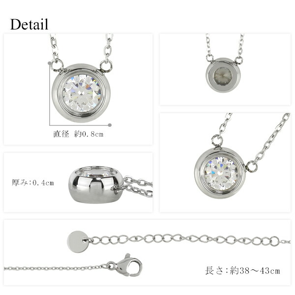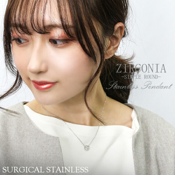 アレルギーフリー サージカルステンレス 一粒 ネックレス レディース ジルコニア ひと粒 ラウンド シンプル シルバー ホワイト レディースネックレス