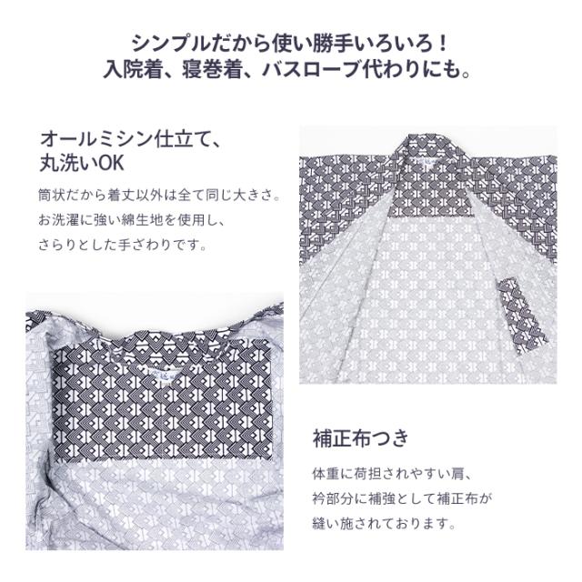 オールミシン仕立、丸洗いOK、旅館浴衣定番、お洗濯にも強い綿生地を使用。