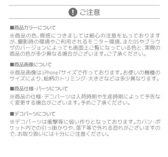 ●デコパーツは衝撃などに弱い作りとなっております。カバン・ポケット内での引っ掛かりや落下等で外れる恐れがございますので、お取り扱いには十分ご注意ください