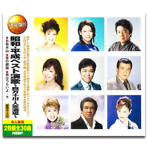 <仕様> 2枚組CD ■発売日:2018.04.16 品番:WCD-706 JAN:4906585845189 発売元:キープ株式会社 <収録曲> 1.四万十川(三山ひろし) 2.お岩木山(三山ひろし) 3.中の島ブルース(秋庭豊とアローナイツ) 4.江釣子のおんな(竹川美子) 5.だんじり(鳥羽一郎) 6.はぐれコキリコ(成世昌平) 7.男と女のラブゲーム(芦川よしみ・矢崎滋) 8.酒ごころ(キム・ヨンジャ) 9.酒場すずめ(村上幸子) 10.裏町酒(秋岡秀治) 11.浪曲子守唄(一節太郎) 12.涙を抱いた渡り鳥(水前寺清子) 13.姿三四郎(姿憲子) 14.下町育ち(笹みどり) 15.男はつらいよ(渥美清) ディスク: 2 1.人恋酒場(三山ひろし) 2.酔待ち酒場(三山ひろし) 3.酔ったほうが勝ち(鳥羽一郎&キム・ヨンジャ) 4.夢割酒(川野夏美) 5.二度惚れ酒(水沢明美) 6.居酒屋「藤乃」(瀬川瑛子) 7.宗右衛門町ブルース(平和勝次とダークホース) 8.泉州恋しぐれ(長保有紀) 9.三春の桜(瀬口侑希) 10.花冷え(里見浩太朗) 11.夜の銀狐(斉条史朗) 12.叱らないで(青山ミチ) 13.花はおそかった(美樹克彦) 14.夢は夜ひらく(緑川アコ) 15.三百六十五歩のマーチ(水前寺清子)