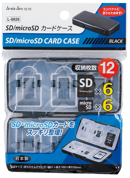 収納枚数は12枚で、SDカード/microSDカードが各6枚入ります。