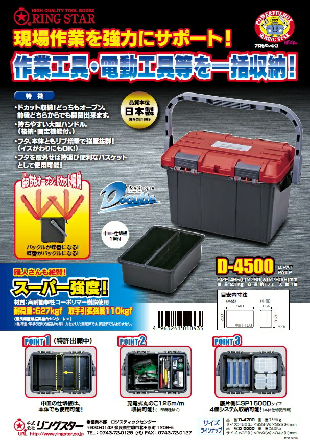 当店オリジナル リングスター 大型工具箱 ドカット D-4500 レッド/ブラック バックルレッドタイプ 在庫