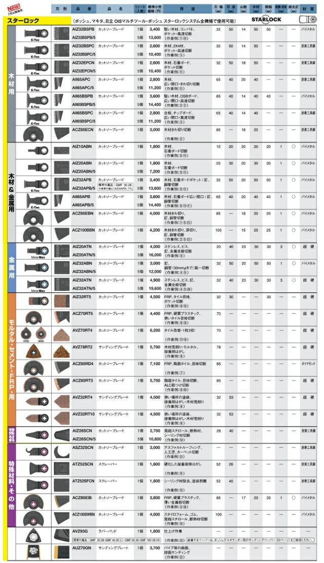 ボッシュ、マキタ、日立 OILマルチツール、ボッシュ スターロックシステム全機種で使用可能