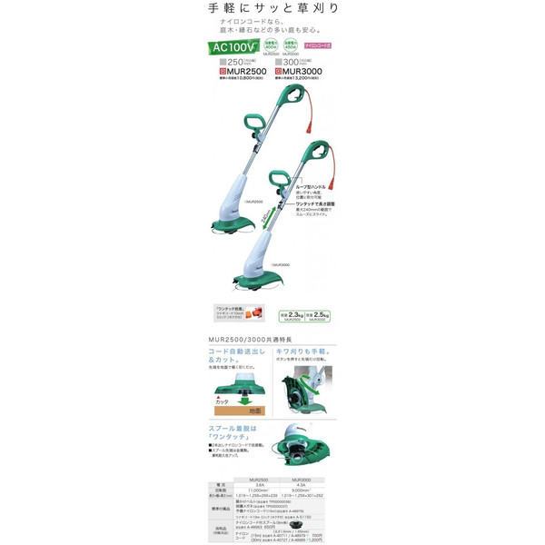 【マキタ】草刈機 AC100V ループハンドル ナイロンコード式 刈込幅300mm