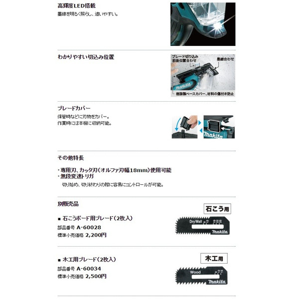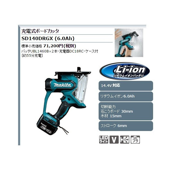 マキタ 充電式ボードカッタ コードレス リチウムイオン6.0Ah SD140DRGX 14.4V対応 特